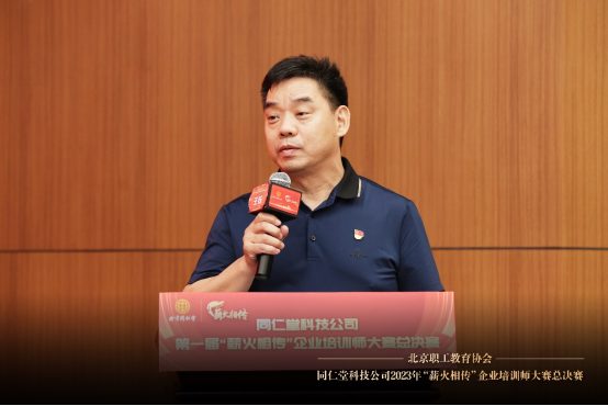 7月18日,由同仁堂科技公司工会和人力资源部联合主办的第一届“薪火相传”企业培训师大赛暨企业培训师认证项目在北京同仁堂科技公司职工之家圆满落下帷幕。本次总决赛分为赛前辅导和现场巅峰对决两部分。来自人力资源部、售后服务监察部、营销分公司、刘家窑分厂、大兴分厂、亦庄分厂、物流配送中心、唐山营养保健品、科技唐山的20名选手参加了本次总决赛。大赛评审组由北京职工教育协会会长许杰担任、北京市总工会职工大学“寻找职工好讲师”主题教学大赛项目负责人白洋、北京财贸职业学院继续教育学院副院长全国讲师大赛专家评委寇长华、北京人力资源服务行业协会沧海博士组成。北京职工教育协会秘书长龙奕汐担任评分监督。
